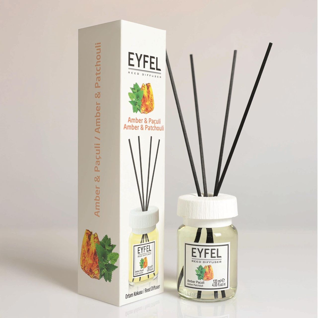 The unique velvety fragrance of amber brings calm and the refreshing effect of nature into your rooms with its unique blend of patchouli. In the base note, the irresistible gourmand harmony of patchouli meets